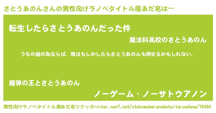 | ファンタジー風あだ名 | 『エターナルサトウアノンー』 |