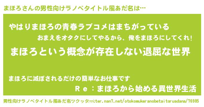 | 胡散臭い通販商品みたいなあだ名 | 『来世でも幸せになれる健康食品…その名も「まほろ」』 |