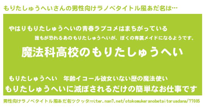 | 女子向けラノベタイトル風あだ名 | 『もりたしゅうへいなんてお断りですっ。』 |