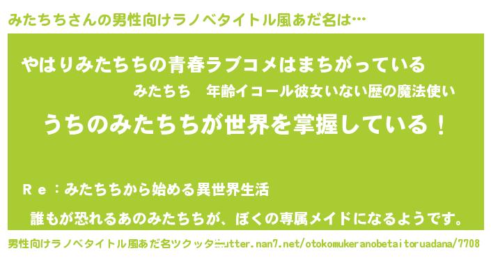| 胡散臭い通販商品みたいなあだ名 | 『運命の人と巡り会える高級そうな皿…その名も「みたちち」』 |
