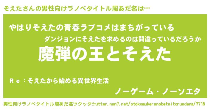 | 女子向けラノベタイトル風あだ名 | 『乙女ゲームの破滅フラグしかない悪役そえたに転生してしまった…』 |