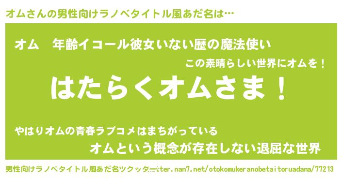 | ヒーロー風カッコイイあだ名 | 『ネオオム』『仮面オムダー』 |
