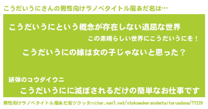| 胡散臭い通販商品みたいなあだ名 | 『全米が絶賛したサプリメント…その名も「こうだいうに」』 |