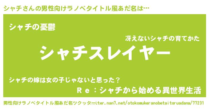 ヘコむあだ名 | 『シャふぇ~』『シャっちょ』 |