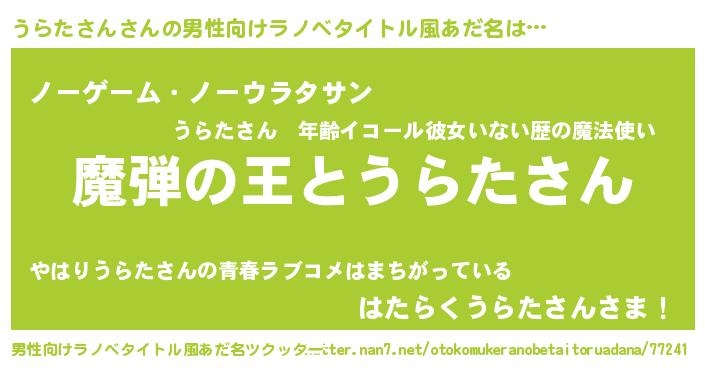 | ヒーロー風カッコイイあだ名 | 『仮面ウラダー』『愛の使者うらたさん』 |
