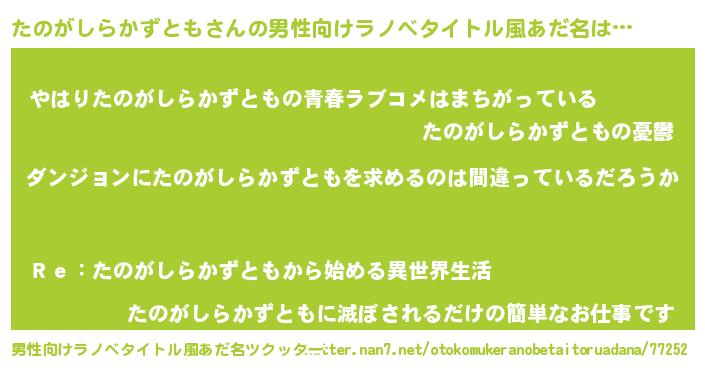 たのがしらかずともさんの男性向けラノベタイトル風あだ名をツクッター!