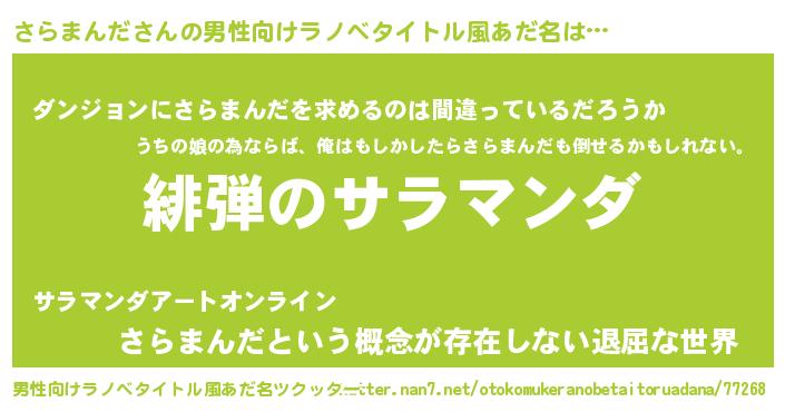 | ヒーロー風カッコイイあだ名 | 『暗黒騎士サラ』『ネオサラマンダ』 |