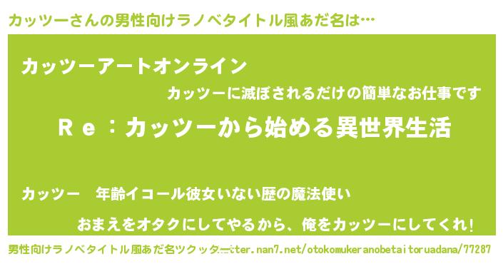 | ヒーロー風カッコイイあだ名 | 『サイバー戦士カッツー』『仮面カッダー』 |