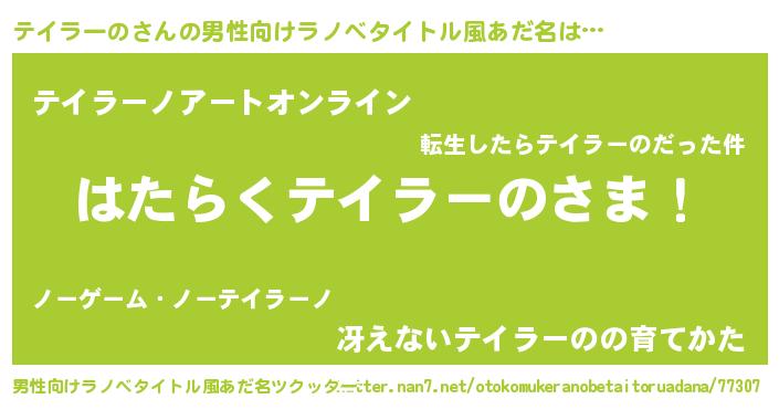 | ヒーロー風カッコイイあだ名 | 『スーパーテイラーノ』『魔戒騎士テイ』 |