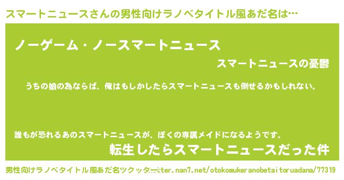 | 女子向けラノベタイトル風あだ名 | 『スマートニュース伯爵の花嫁』 |
