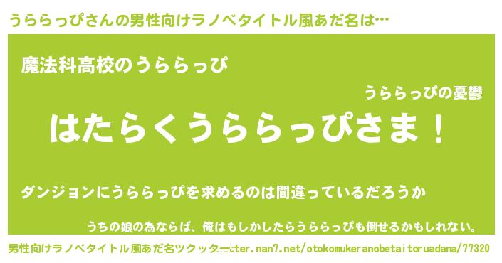 うららっぴさんの男性向けラノベタイトル風あだ名をツクッター!