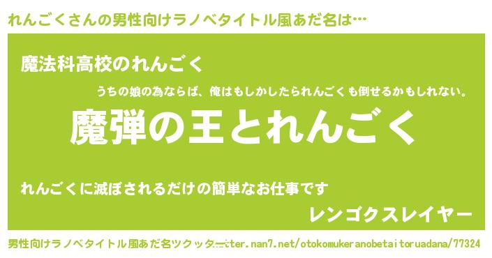 | 女子向けラノベタイトル風あだ名 | 『れんごくが死なない童話 林檎のれんごくの診療簿』 |