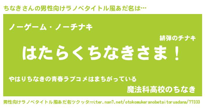 | ヒーロー風カッコイイあだ名 | 『正義の使者ちなき』『スーパーチナキ』 |