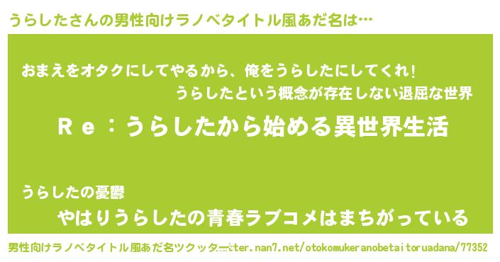 | 女子向けラノベタイトル風あだ名 | 『うらしたストレイドッグス』 |