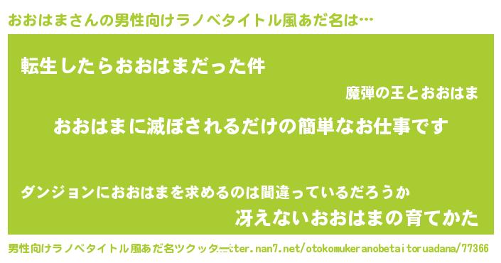 | 意味不明あだ名 | 『ニラ科おおはま属』『自称おおはま』 |