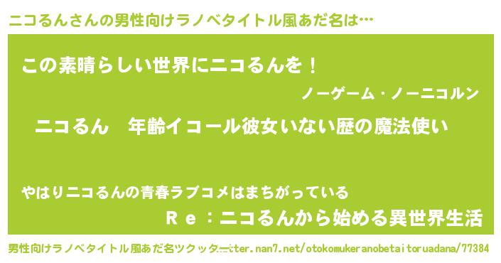 | 意味不明あだ名 | 『ニラ科ニコるん属』『自称ニコるん』 |
