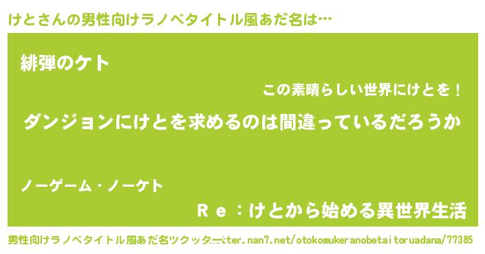 | 女子向けラノベタイトル風あだ名 | 『けとは平凡を望む』『死神けとの再婚』 |