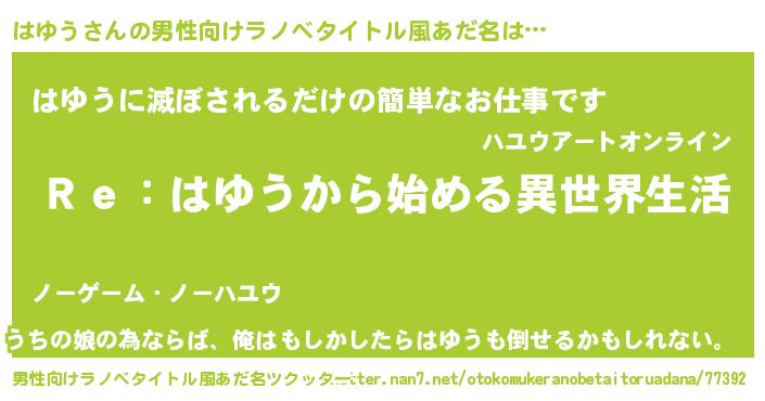 | ヒーロー風カッコイイあだ名 | 『最強戦士ハユウ』『ウルトラはゆうマン』 |