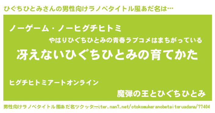 | 胡散臭い通販商品みたいなあだ名 | 『お金では代えられない隕石のかけら…その名も「ひぐちひとみ」』 |