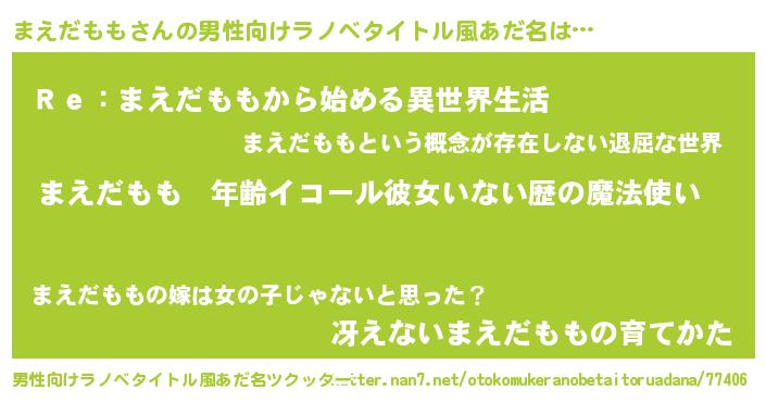 | 女子向けラノベタイトル風あだ名 | 『まえだももの玉の輿計画!』 |
