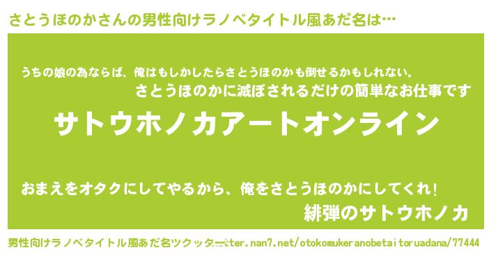 | ヒーロー風カッコイイあだ名 | 『スーパーサトウホノカ』『暗黒騎士サト』 |