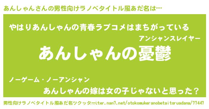 | 女子向けラノベタイトル風あだ名 | 『あんしゃん姫と円卓の騎士』 |