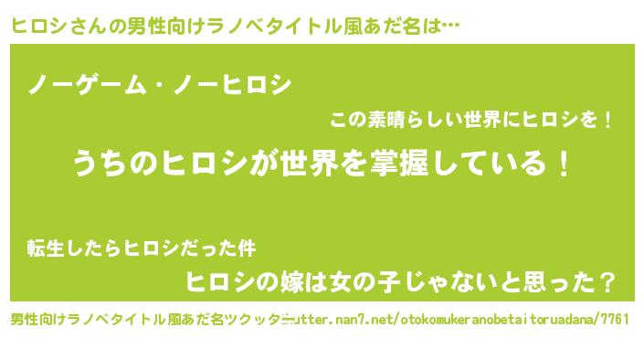 | ピコ太郎風あだ名 | 『ヒヒ太郎』『ヒロ次郎』『ピヒ一郎』 |