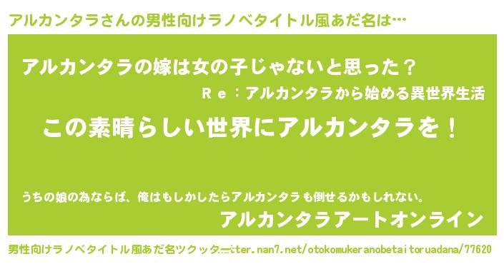 | 女子向けラノベタイトル風あだ名 | 『悪役アルカンタラに転生したようですが、知った事ではありません』 |