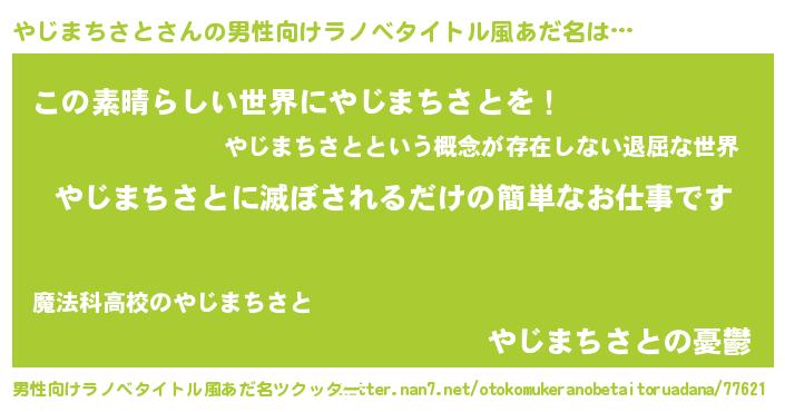| 胡散臭い通販商品みたいなあだ名 | 『あなたにだけ特別に提供する100年もののヴィンテージワイン…その名も「やじまちさと」』 |