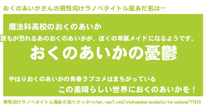 | 女子向けラノベタイトル風あだ名 | 『おくのあいか姫と円卓の騎士』 |