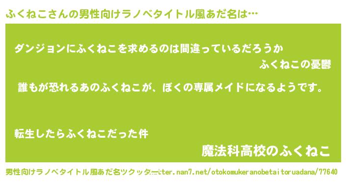 | 女子向けラノベタイトル風あだ名 | 『ふくねこの契約王妃』 |