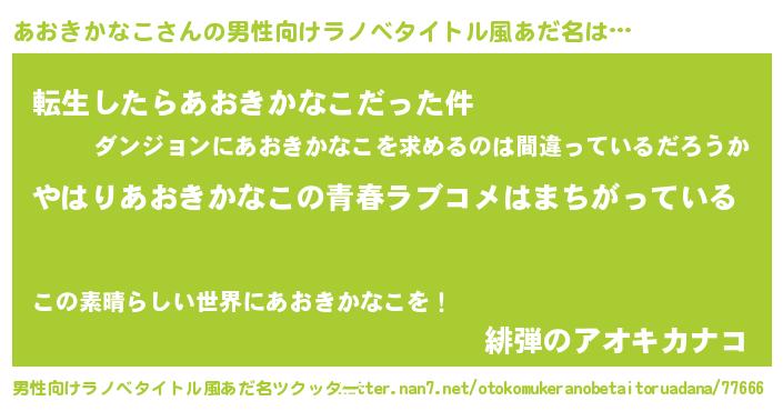 | 女子向けラノベタイトル風あだ名 | 『あおきかなこ伯爵の花嫁』 |
