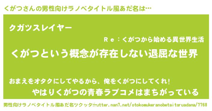 | 胡散臭い通販商品みたいなあだ名 | 『来世でも幸せになれる水素水…その名も「くがつ」』 |