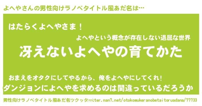 | 意味不明あだ名 | 『とにかく怪しいよへや』『自称よへや』 |