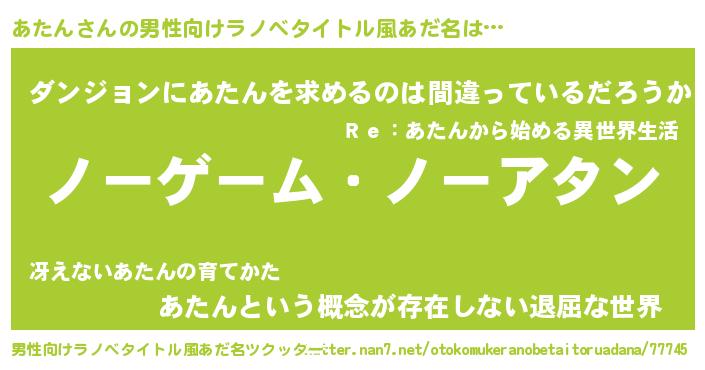 | 女子向けラノベタイトル風あだ名 | 『死神あたんの再婚』『闇のあたん』 |