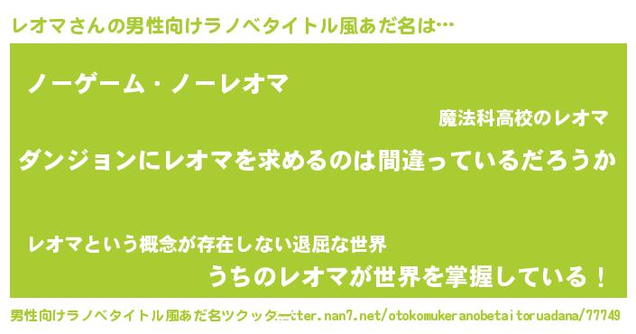 | 意味不明あだ名 | 『とにかく怪しいレオマ』『自称レオマ』 |