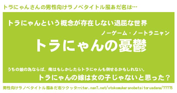| 胡散臭い通販商品みたいなあだ名 | 『モテモテ間違いなし霊験あらたかなお札…その名も「トラにゃん」』 |