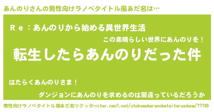 | 意味不明あだ名 | 『なめこ科あんのり属』『自称あんのり』 |