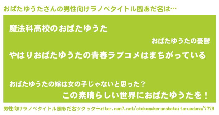 | 女子向けラノベタイトル風あだ名 | 『おばたゆうたの雑貨屋さん』 |