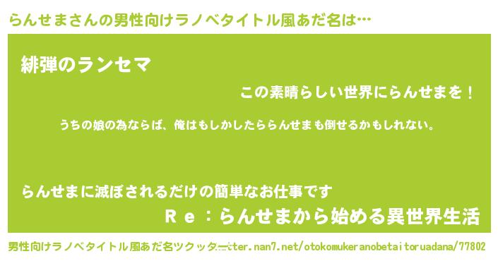 らんせまさんの男性向けラノベタイトル風あだ名をツクッター!