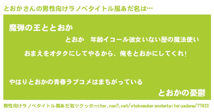 | 女子向けラノベタイトル風あだ名 | 『とおか夫妻のなれそめ』 |