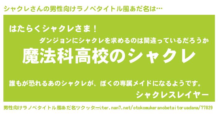 | 意味不明あだ名 | 『自称シャクレ』『しいたけ科シャクレ属』 |