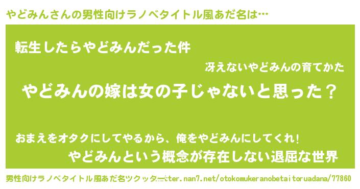 | 女子向けラノベタイトル風あだ名 | 『やどみん様がみてる』 |