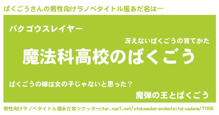 | ヒーロー風カッコイイあだ名 | 『ウルトラ戦士バクゴウ』『仮面バクダー』 |