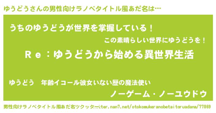 | 意味不明あだ名 | 『自称ゆうどう』『ヨモギ科ゆうどう属』 |