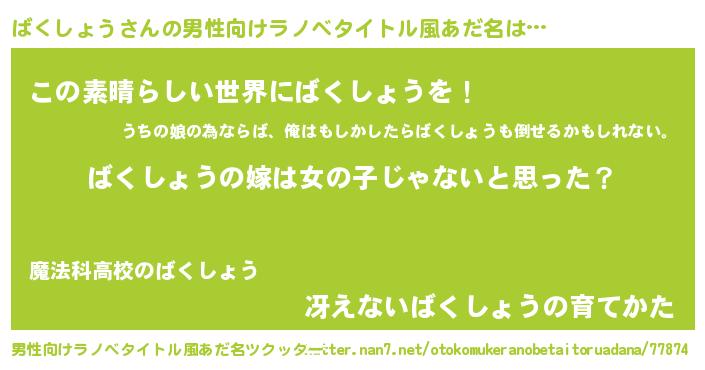 | 意味不明あだ名 | 『とにかく怪しいばくしょう』 |