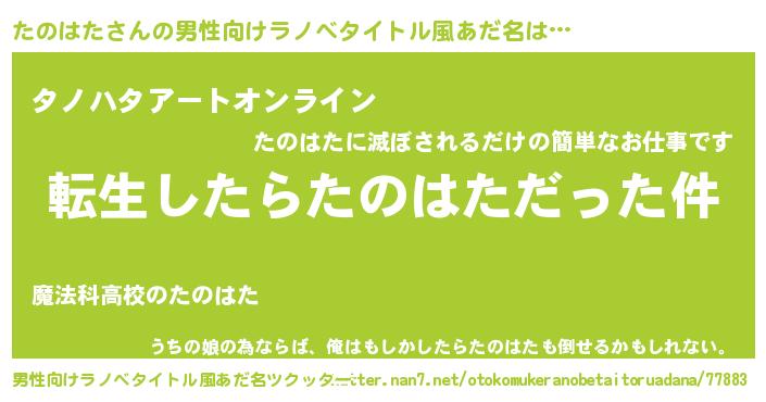 | 胡散臭い通販商品みたいなあだ名 | 『モテモテ間違いなしブレスレット…その名も「たのはた」』 |