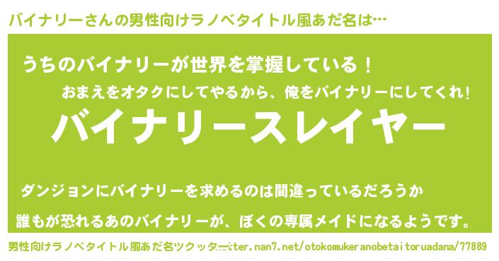 | 胡散臭い通販商品みたいなあだ名 | 『絶対に幸福をもたらす健康食品…その名も「バイナリー」』 |
