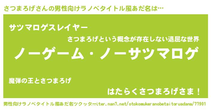 | 女子向けラノベタイトル風あだ名 | 『さつまろげ恋絵巻』 |
