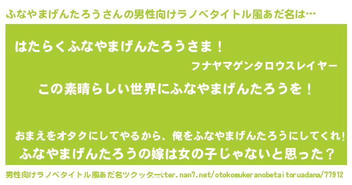 | 意味不明あだ名 | 『住所不定無職ふなやまげんたろう(2歳)』 |
